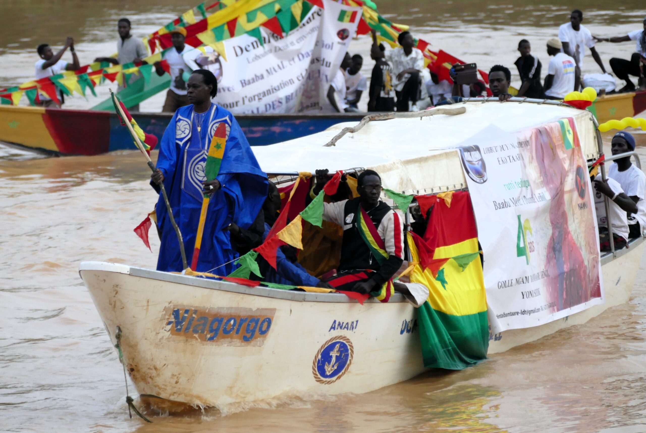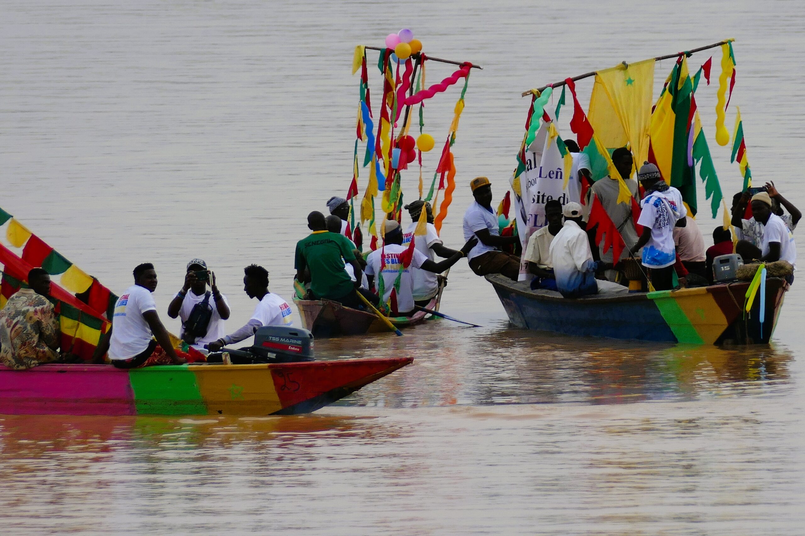 En pirogue au large du fleuve, la pagaie à la main, le drapeau mauritanien perché en haut, les pêcheurs ont présenté un mouvement d’ensemble d’une belle facture. Ces peuples de l’eau, accompagnés par des jeunes filles et garçons sur les canoës ont offert aux hôtes du Fuuta, une belle démonstration culturelle. Cette chorégraphie servie avec un beau gestuel de bras valides, a escorté l’initiateur de ce festival inédit, l’artiste Baaba Maal.