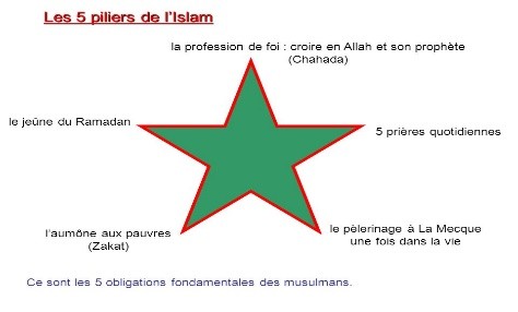 • Les 5 piliers de l’islam, ce sont les 5 obligations fondamentales du croyant :