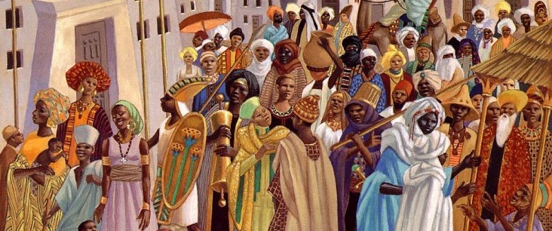Reste que, dans cet empire stable et puissant, l’islam, comme le rappellent ici François-Xavier Fauvelle et Hadrien Collet, cantonné aux villes, est une religion minoritaire, qui cohabite avec les religions traditionnelles. Le voyageur arabe Ibn Battuta nous a légué une description devenue célèbre d’une fête musulmane où des griots arborent un masque hérissé de plumes et muni d’un bec rouge.